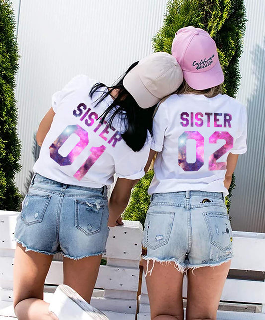 Baumwoll-T-Shirts mit Aufschrift „bff Schwestern“